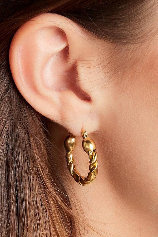 Hoepels met gedraaide vorm. Deze oorbellen zijn gemaakt van roestvrijstaal