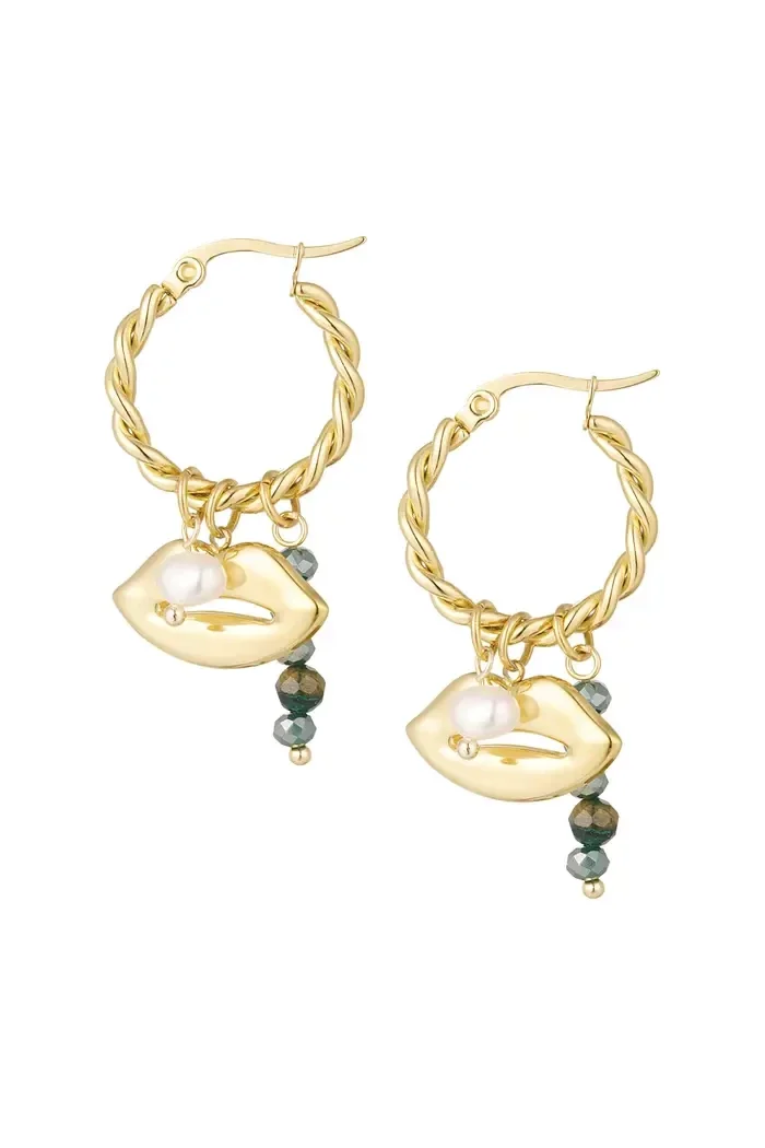 Hoe leuk zijn deze oorbellen met lipdetail?Een echte toevoeging aan je earparty. De oorbel is gemaakt van roestvrij staal, glas, steen en parels. De afmetingen zijn 2,1 bij 4 centimeter.