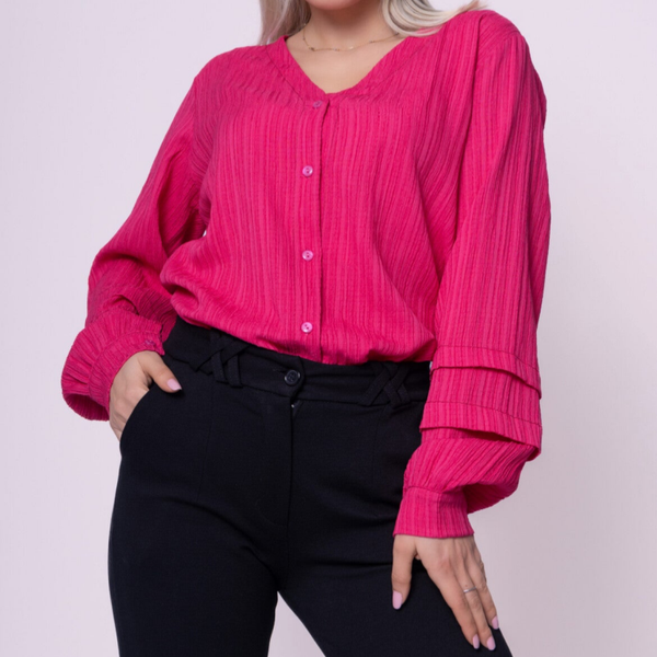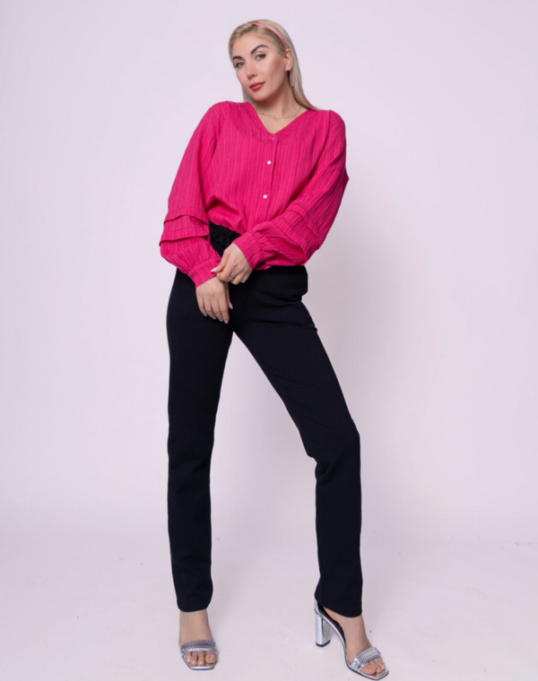 Blouse Bo is een superfijne blouse met een v-hals en knoopsluiting.