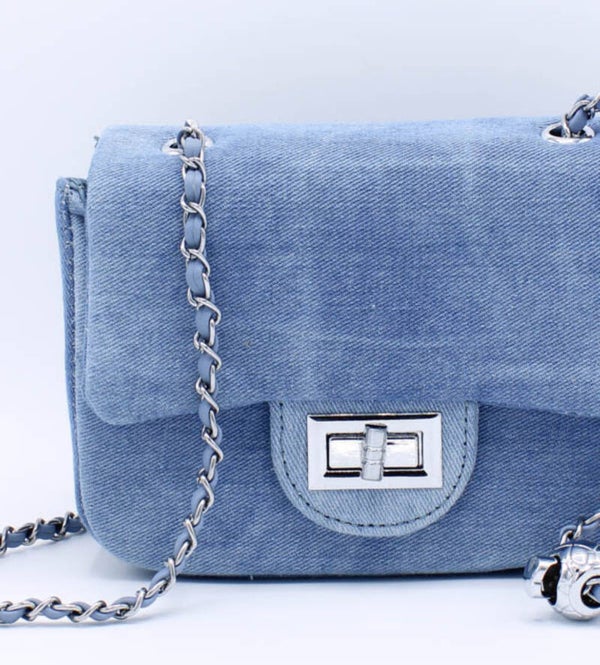 Cross body tas in washed demin met zilver kleurige details.Deze tas heeft een verstelbare schouder riem en is geheel gevoerd.