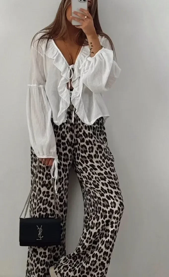Deze silk pants zit heerlijk want hij heeft elastiekenband met een koord en heeft ruime broekspijpen en is lekker lang, deze broek is zo leuk te combineren met bijvoorbeeld een witte of zwarte blouse of top maar je kan hem ook heel leuk dragen met een gekleurde top in het rood,paars