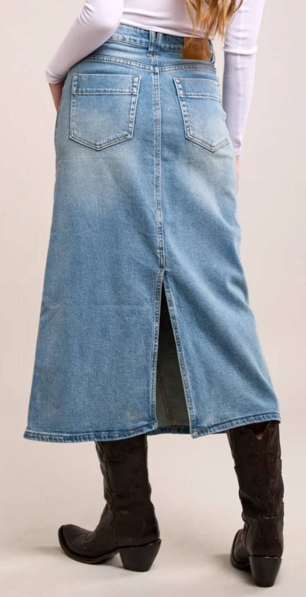 Kijk deze superleuke Toxik jeansrok! heeft zakken aan de voorkant en achterkant en sluit aan de voorkant met een rits en knoop, aan de achterkant heeft de rok een split.Zit ook iets stretch in de rok!