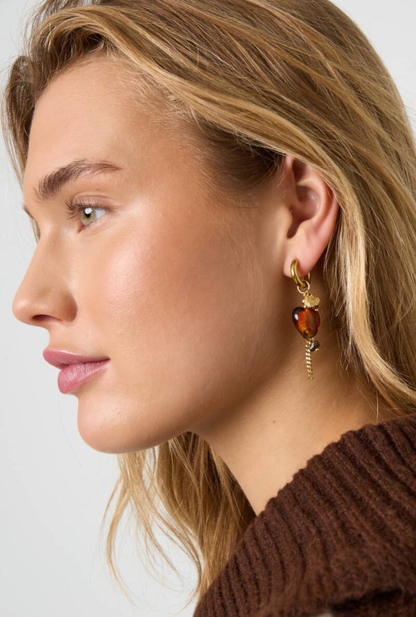 Trendy Oorbellen met Bruin Hartje van Roestvrij Staal