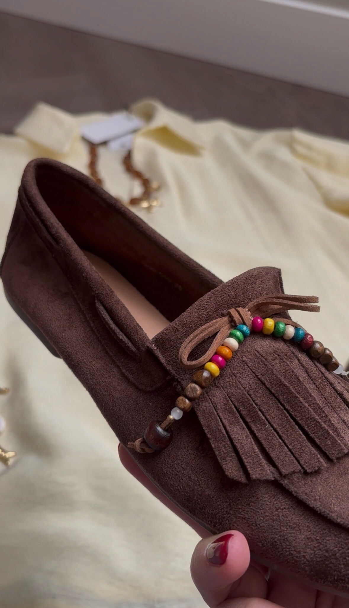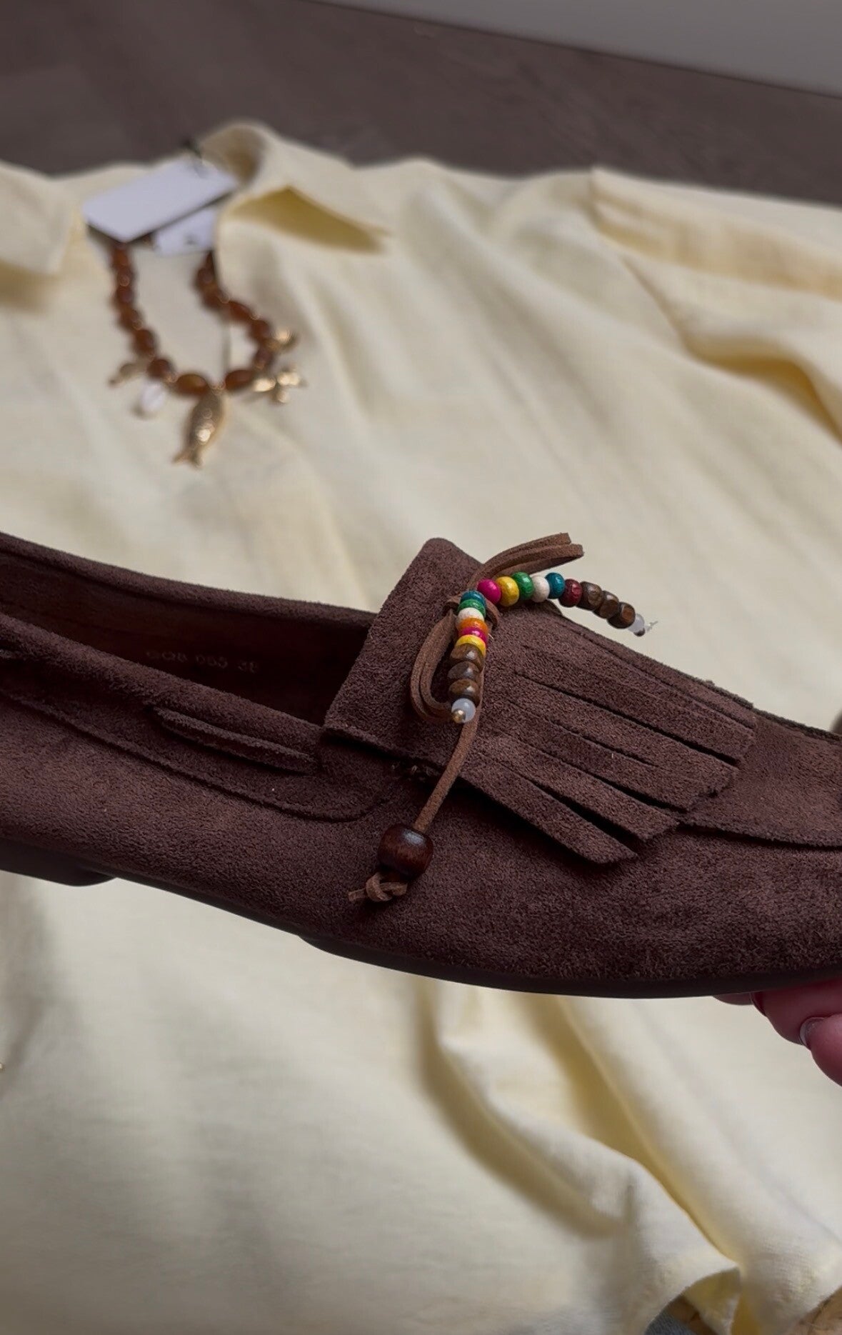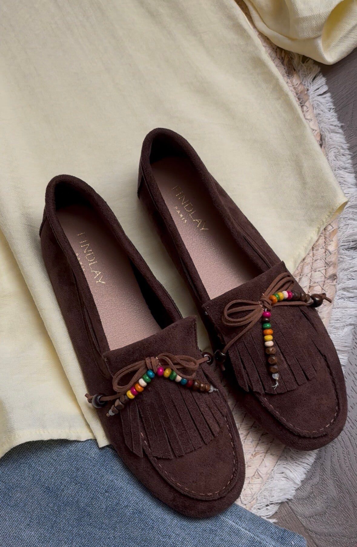 LOAFERS BRUIN MET FRANJES EN STRIK JUST ULLA